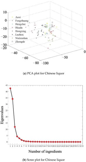 Chinese liquors belong to the distilled liquor which is loved by people for its strong aromatic odor. As a traditional fermented beverage, the saccharifying ferment of Chinese liquor is daqu, xiaoqu, bran koji and yeast wine, which is produced with cereal grains as the main raw materials and is processed by distilling, saccharifying and fermenting []. The microconstituents of liquors are organic compounds which directly influence the flavor of liquor quality. These organic contents are 1% to 2% including acids, esters, alcohols, aldehydes, and so on. Depending on the different brewing techniques and raw materials, different liquors have significant differences in aromatic characters and odor fingerprint. Therefore, the case study of Chinese liquor is representative and typical.