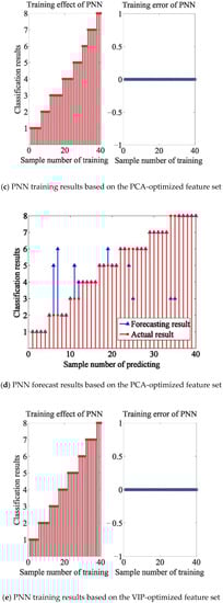 The PNN models based on PCA-optimized and VIP-optimized are superior to the model based on the original features, which means that there is a lot of redundant information in the original features. Compared with the PNN model based on PCA-optimized, the model of VIP-optimized performed well, which means that the feature mining method based on VIP-optimized can improve the accuracy rate and extract effective features.