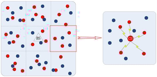 Figure 1, where the blue dots and red dots represent the requesters and the potential requesters, respectively. The cell is divided into the grid based on the grid-based clustering deduced in [