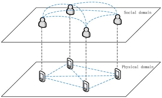 18]. Cluster head nodes forward data for other users in the system, so cluster head nodes are frequently referred to as relay nodes. The relay nodes will cause a large amount of storage, calculation, and energy burden as providing services for other users. In addition, different users have various file or video demands, so it is very likely that the relay nodes will cooperate negatively. The stability of D2D links can be affected by the users’ selfishness, mobility and degree of intimacy between users. Insufficient intensity of social relationships between users can even lead to frequent breaks in D2D links, severely reducing the ability in D2D communication and the user’s experience quality. Therefore, it is necessary to integrate social domain information and social network research methods into the research of D2D multicast communication.