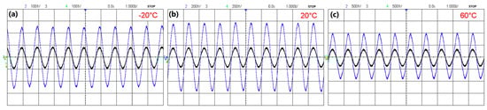 The output of the sensors under a 1-kHz sound wave excitation was acquired from −20 to 60 °C every 20 °C. The temperature was kept constant for more than 15 min at each testing temperature. Then, the data were recorded by oscilloscope.