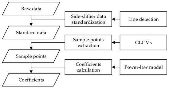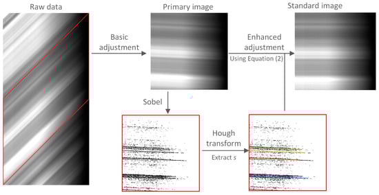 To ensure the accuracy of subsequent processing, the raw side-slither data standardization based on the linear features was performed to ensure that each line had the same feature. The important process of obtaining highly accurate coefficients [25] can be divided into two main steps: basic adjustment and enhanced adjustment.