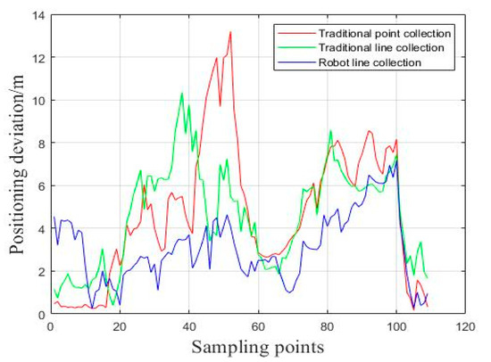 Clearly, the robot line collection method can get dense error distribution for most points, which means that the scheme proposed in this paper can also get better positioning accuracy than traditional methods in dynamic tests.
