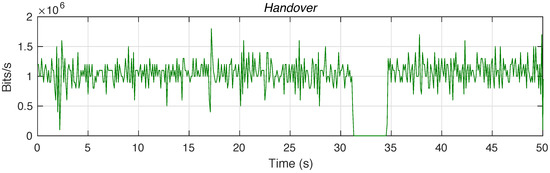 Figure 4c, which represents the data traffic corresponding to the sensor information and the GPS data received by the mission planner. Analogously,