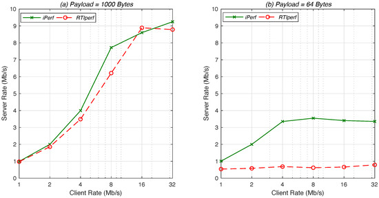 https://iperf.fr), which can be used to send data traffic over UDP at the aforementioned rates, using the same size of the application-level data unit. The results of these experiments are shown in