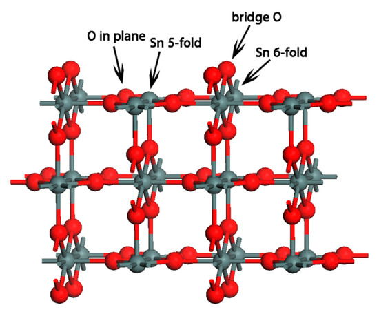 - Oviedo, J.; Gillan, M.J. Energetics and Structure of Stoichiometric SnO2 Surfaces Studied by First-principles Calculations. Surf. Sci. 2000, 463, 93–101. [Google Scholar] [CrossRef]