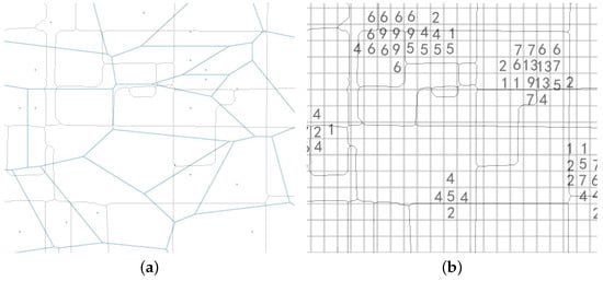 Core steps for mapping users from voronoi polygons to grid cells. (a) Map the users from base station to the street region; (b) Map the population from WorldPop to the street region.