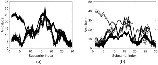- Halpein, D.; Hu, W.; Sheth, A.; Wetherall, D. Tool release: Gathering 802.11n traces with channel state information. In Proceedings of the ACM SIGCOMM Computer Communication Review, New York, NY, USA, 15–19 August 2011; p. 53. [Google Scholar]