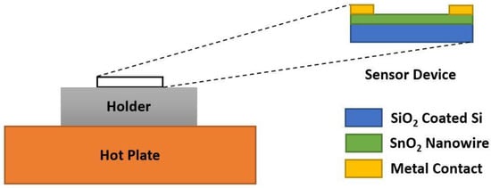 - Köck, A.; Tischner, A.; Maier, T.; Kast, M.; Edtmaier, C.; Gspan, C.; Kothleitner, G. Atmospheric pressure fabrication of SnO2-nanowires for highly sensitive CO and CH4 detection. Sens. Actuators B Chem. 2009, 138, 160–167. [Google Scholar] [CrossRef]