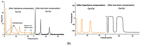 (a) Self-sensing signal vs. = 12 nF; (b) self-sensing signal with no local strain compensation.