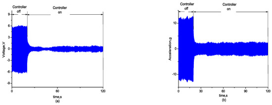 (a) Convergence signal of self-sensing measurement; (b) convergence signal of acceleration.