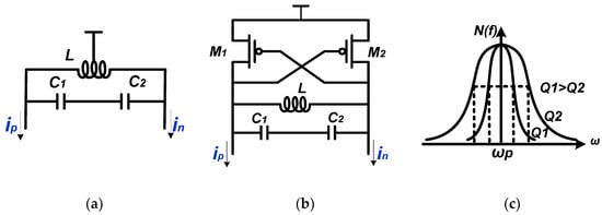 (a) The LC resonant load; (b) The Q-enhanced LC resonant load; (c) The tuning curve of the LC resonator.