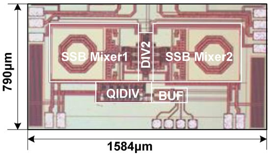 - Peng, Y.; Zhang, L.; Fu, J.; Wang, Y. Analysis and Design of a Broadband SiGe HBT Image-Reject Mixer Integrating Quadrature Signal Generator. IEEE Trans. Microw. Theory Tech. 2016, 64, 688–698. [Google Scholar] [CrossRef]