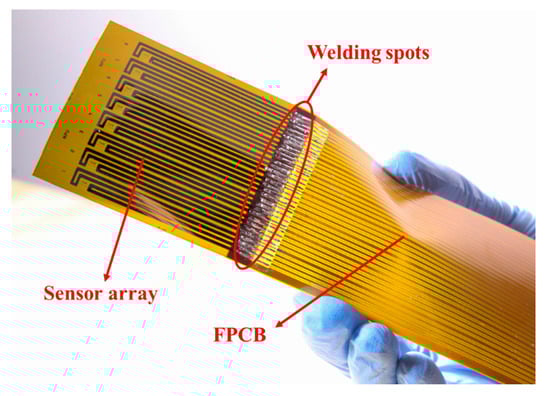 Sensors are connected to the flexible printed circuit board (FPCB) by welding.