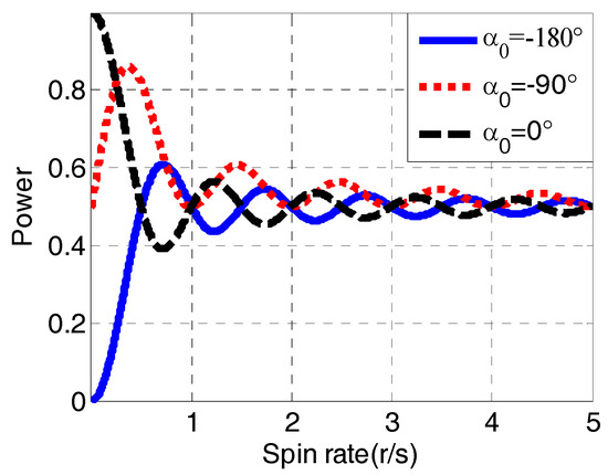The power of receiver signals can be reduced during antenna rotation and results in attenuation of the power of satellite signals. As shown in Figure 6, it is the normalized average power of received satellite signals in one second at different spin rates with initial relative roll angles α0.