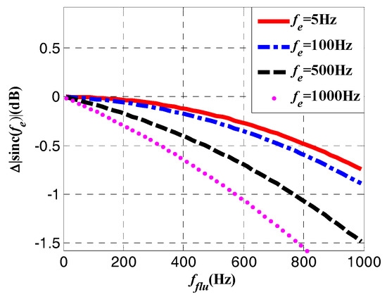 where fe is the carrier frequency error in static situation, fflu is the fluctuation induced frequency error during rotation. Figure 7 shows the attenuation caused by fluctuation at different static frequency errors.