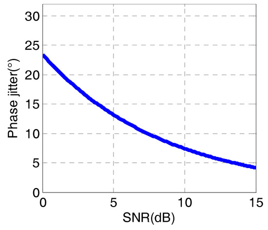 Figure 17 shows the theoretical predictions of the phase jitter at different SNRs of input signals. The bandwidth of input signal is 3 Hz, and the bandwidth of PLL is set to BPLL = 0.5 Hz.