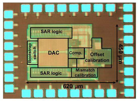 - Hung, G.-Y.; Chang, S.-J.; Liu, C.-C.; Lin, Y.-Z. A 1-μW 10-bit 200 kS/s SAR ADC with a bypass window for biomedical applications. IEEE J. Solid-State Circuits 2012, 47, 2783–2795. [Google Scholar] [CrossRef]