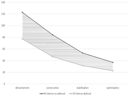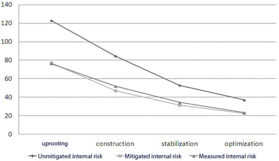Evolution of internal risks according to time.