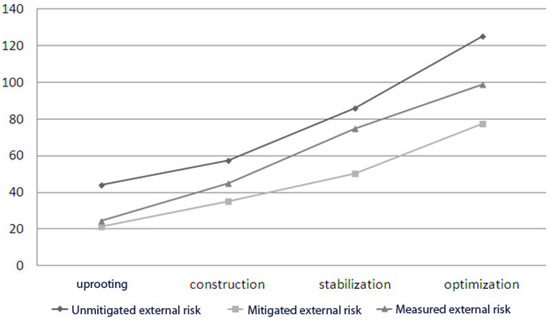 Evolution of external risks according to time.