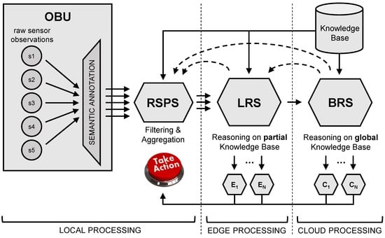 To tackle the issue with performing real-time analysis, two research trends have emerged, being stream reasoning and cascading reasoning. Stream reasoning [] tries to incorporate semantic reasoning techniques in stream processing techniques. It defines a data stream as a sequence of time-annotated items ordered according to temporal criteria, and studies the application of inference techniques to such streaming data []. Cascading reasoning [] exploits the trade-off between reasoning complexity and data stream velocity by constructing a processing hierarchy of reasoners. Hence, there is the need for a platform using these techniques to solve the issues in smart healthcare.