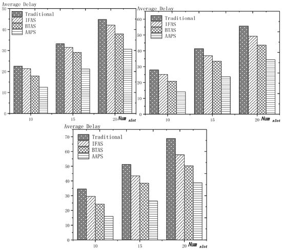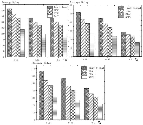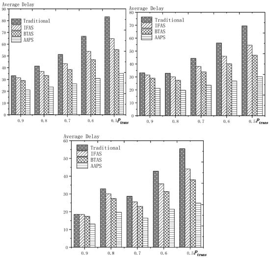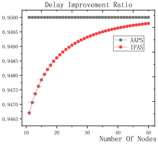 Table 5 shows the delay of all the nodes in the model shown in Figure 2 when AAPS is adopted and the average delay is 21.43. The total number of deliveries is 44, with an average of 1.47. Compared with the traditional scheme, the average delay is reduced by 53.31% and the average transmission times is reduced by 43.46%. Compared with IFAS, the average delay is reduced by 34.00% and the average transmission times is reduced by 18.33%. Compared with BTAS, the average delay is reduced by 6.30% and the average transmission times is increased by 5%.