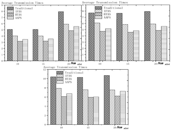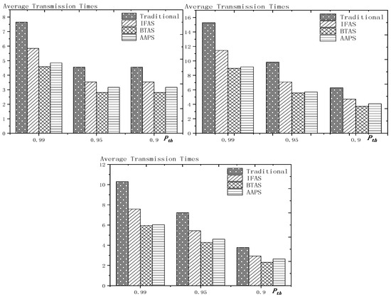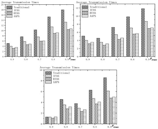 In terms of the improvement of transmission times, compared with the traditional algorithm, the AAPS algorithm is improved by −2.29–42.04%, the BTAS algorithm is improved by 16.09–43.93% and the IFAS algorithm is improved by 0.00%–29.53%.