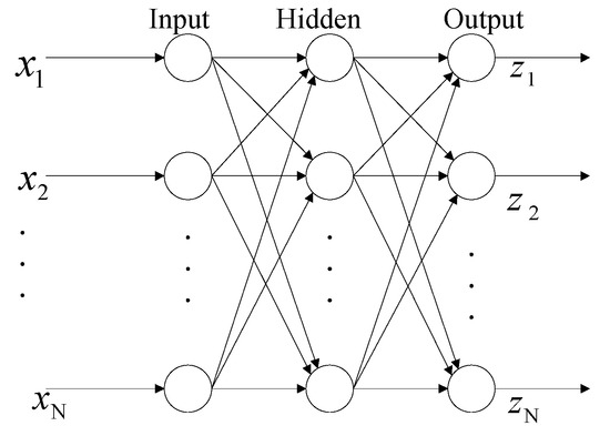 ANNs have been developed as an important tool in modeling relations between input and output data [14]. It depends a lot on signal processing elements called neurons. They are associated, and the intensity of the associations is denoted by parameters named weights. There are several kinds of ANN structures. The best known one is the feed forward neural network (FFNN), which is generally divided into multiple layers. Usually, there is an input layer, a few hidden layers, and an output layer. In this work, the FFNN with the network structure shown in Figure 7 was built. The input layer is the first layer that imports all inputs to the network. The second layer is the hidden layers. The output layer is the third layer where outputs are received [15]. The training of the FFNN is done by minimizing the cost function, usually a quadratic function of output error. The most common training algorithm for FFNN is the back propagation (BP) algorithm. Therefore, a BP algorithm was used during the training in the present work.