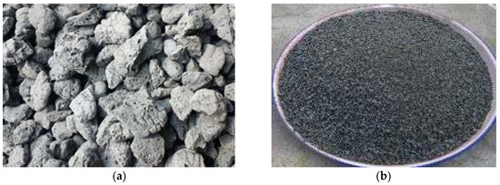 Appearance of the lightweight coarse and fine aggregates: (a) Crushed shale ceramsite; (b) Ceramic sand.