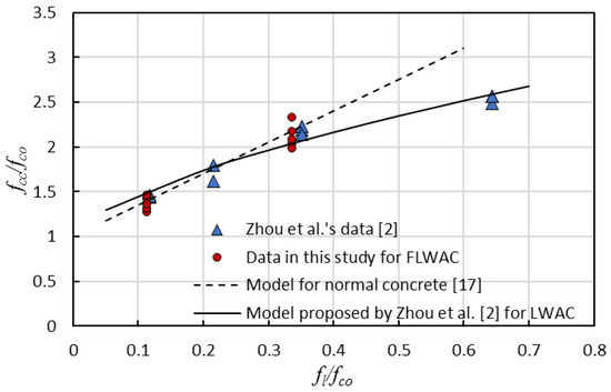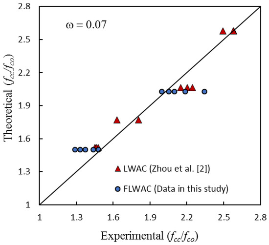 As shown in Figure 10, the model proposed by Zhou et al. [2] can predict the ultimate strength for both FRP-confined FLWAC and LWAC with good accuracy.