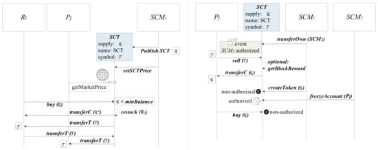 In order to maintain a stabilized demand for energy in a smart community, it is necessary to effectively coordinate individual consumption, thus allowing better planning of contracted resources. To cover this demand the concept of resource trading [] arises, by which users who have contracted a certain quota of resources lend or borrow resources from their neighbours. To facilitate the exchange of this type of service, a monetary system of resource credits is created, based on the concept of resource assignment from collaborative cloud services []. This concept of resource trading also appears in other research works ranging from the exchange of energy [,] to the exchange of professional services, such as peer reviews [], in the academic field. All these works define a brokerage trading system that values individual contributions and stores the merit accumulated by these users. The problem highlighted by these works is the degree of reliability offered by these systems to their users. Being centralized systems and generally controlled by third-parties, they are prone to attacks and integrity violations, which would affect the information contained and therefore, the trust between the involved devices [].