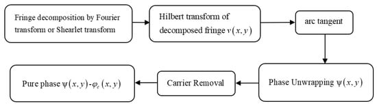 With the obtained fringe in Equation (4) or Equation (6), the phase distribution with carrier is calculated as follows: