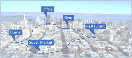 - Ashbrook, D.; Starner, T. Using GPS to learn significant locations and predict movement across multiple users. Personal Ubiquitous Comput. 2003, 7, 275–286. [Google Scholar] [CrossRef]