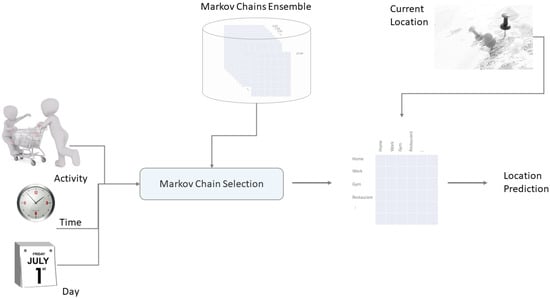 This results in a final total of transition matrices, that is, 252 Markov Chains. Each of them is trained separately and covers a specific context scenario. During the prediction phase, our model picks out the appropriate Markov Chain depending on the current context (time, day, and activity).
