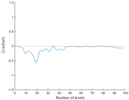 In Figure 11, it can be seen that the gradient of the sound speed profile was stable at the 0th layer, and the sound speed was kept constant between the 0th layer and the 10th layer. Between the 10th layer and the 50th layer, significantly floated, and the sound speed changed more frequently. After the 50th layer the gradient of the sound speed tended to stabilize at zero.