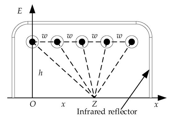 An MFI thermal excitation device formed by carbon fiber radiators distributed in parallel is shown in Figure 6. The distance of two adjacent carbon fiber radiators is w. Rough infrared reflector is produced by sand-blasting process of quartz sand on the inner surface of the case to form uniform diffuse reflection of the thermal excitation. The irradiance of the Z point is composed of the reflector reflection and the direct radiation, which can be calculated as follow: