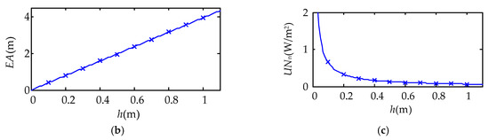 The optimization results show that the w and h have obvious linear relationship. From Figure 7, under a rise of h, the effective area increases, but the uniformity decreases. In a specific testing, it is necessary to consider the h according to the detected object.