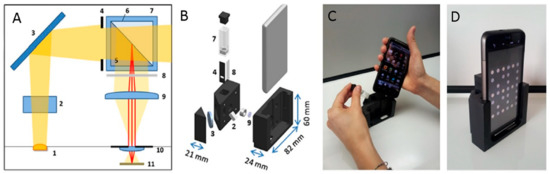 - Giavazzi, F.; Salina, M.; Ceccarello, E.; Ilacqua, A.; Damin, F.; Sola, L.; Chiari, M.; Chini, B.; Cerbino, R.; Bellini, T.; et al. A fast and simple label-free immunoassay based on a smartphone. Biosens. Bioelectron. 2014, 58, 395–402. [Google Scholar] [CrossRef] [PubMed]