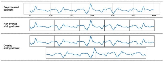 Figure 5 illustrates that an overlapping sliding window generates more patterns than a non-overlapping sliding window. Particularly, for each 600 data points (corresponding to 5 s), the non-overlapping sliding window technique provides 5 patterns while the overlapping sliding window technique yields 9 patterns. Additionally, the overlapping sliding window has been shown to be suitable for various recognition applications [23] and provided higher accuracy than non-overlapping window [41]. For this reason, in this research, we applied the sliding window technique with a 50% overlap to avoid missing events and activity truncation. Short time windows may not provide sufficient information for classifications, while long windows may contain turns within a single time window. The small windows (2 s or less) have been proved to give the most accurate performance for human activity recognition [40]. However, for sensor position detection, the longer window size are often selected such as 4 [1], 5 [24], 5.12 [21], 10 [22], 10.24 [21] and 20.48 [21], 45 [26] s, respectively. Our selected window size is 5 s as this period is sufficient to capture the repetitive patterns of sensors during walking.