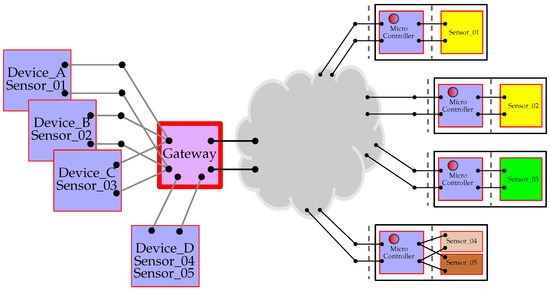 The standardization of all sensor processes is completed by a common conceptual framework, where we decompose the edge system into 3 components: sensor, device, and gateway. Figure 3 shows this architecture. As we can observe, each physically connected equipment has its corresponding software shadow that acts as the protocol bridge to the real physical system.
