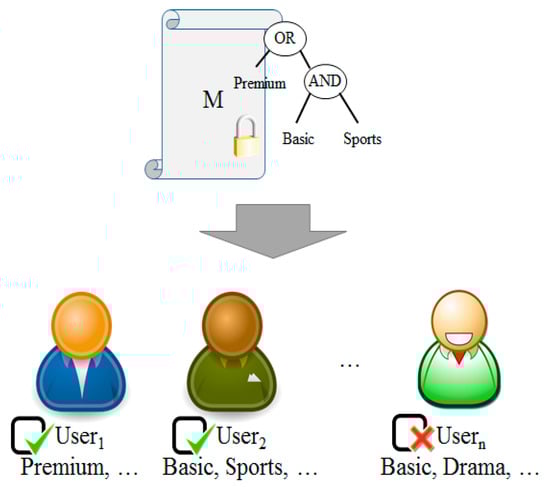 - Attrapadung, N.; Imai, H. Conjunctive Broadcast and Attribute-Based Encryption. In Proceedings of the International Conference on Pairing-Based Cryptography, Palo Alto, CA, USA, 12–14 August 2009; Springer: Berlin/Heidelberg, Germany; pp. 248–265. [Google Scholar]