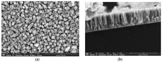 The film morphology was analyzed by using scanning electron microscopy (SEM, FEI QUANTA and Thermo scientific Apreo SEM (Thermo Scientific, Waltham, MA, USA)). The crystalline structure of the films was determined by X-ray Diffraction (XRD, X’Pert Panalytical, Almelo, Netherlands).