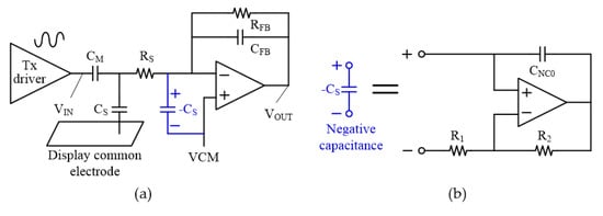 The remainder of this paper is organized as follows. In Section 2, we examine the bandwidth reduction phenomenon of the signal due to the increase in the display coupling capacitance of an ultra-thin display, and propose a circuit with NC to overcome this problem. Section 3 describes the implementation of a TSC with an NC circuit in detail. The final section summarizes and discusses the measurement results for a test chip.