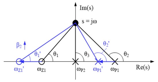 Then, the phase of the impedance from the pole-zero plot can be obtained by Equation (3).