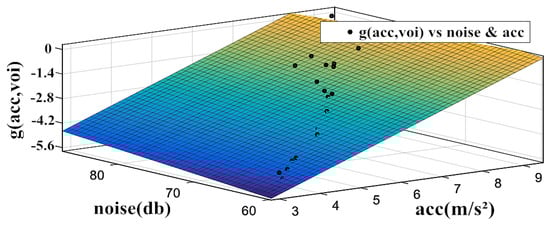 Finally, the values of function are calculated by Equation 1 with the MOS scores of the video, , and . In this manner, we can draw the scatter plot with obtained g(acc,voi), , and , as shown in Figure 3.