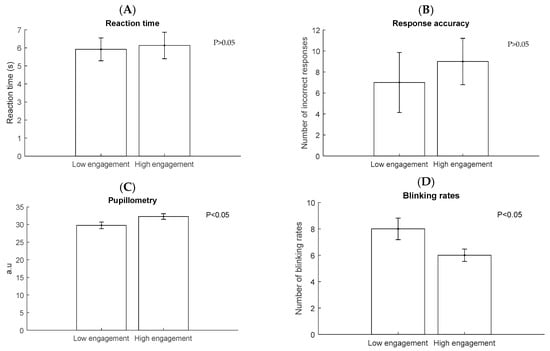 - Brink, R.L.; Murphy, P.R.; Nieuwenhuis, S. Pupil diameter tracks lapses of attention. PLoS ONE 2016, 11, e0165274. [Google Scholar] [CrossRef]