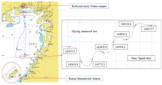 Table 1 provides a time chart of the experimental processes conducted in Osaka Bay on February 2, 2017, and Figure 7 shows the corresponding track chart of the Fukae-maru. In Table 1, test numbers ①–⑥ refer to the experimental processes: ①–③ denote rapid depressurizations of the small LH2 tank with a release valve, ④ denotes drifting with the engine stopped and under the influence of natural wind and waves, ⑤ denotes the zigzag maneuver as shown in Figure 7, and ⑥ denotes a sharp turn at a 360° circle. During ①–⑤, the liquid level detected by the five 500 mm long MgB2 level sensors at a heater input of 9 W was synchronously measured with the temperature and pressure inside the cryostat. Finally, during ⑥, the temperature and pressure were synchronously measured without the liquid level at a heater input of zero under natural heat-input conditions. All the rapid-depressurization tests were conducted by manually opening the release valve after achieving a pressure of around 0.2 MPaG. Tests ① and ⑥ were reported. Herein, we discuss Test ⑤ when the ship motion was maximum with liquid-level measurement.