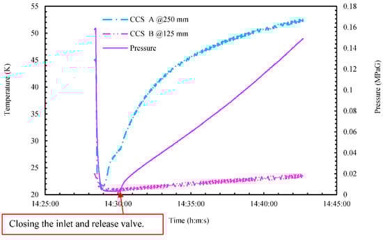 In addition, the temperature of CCS B located within liquid phase increased from 22 to 24 K with the increased pressure after 14:30. This means that the saturation temperature of the LH2 increased with increasing the pressure of the small LH2 tank.