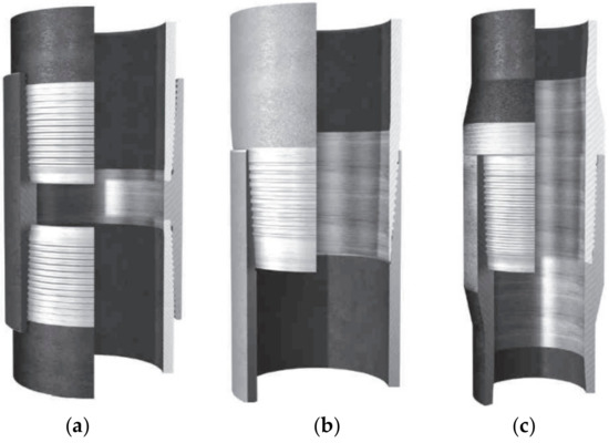 (a) Threaded and coupled; (b) integral flush; (c) integral upset connection [43].