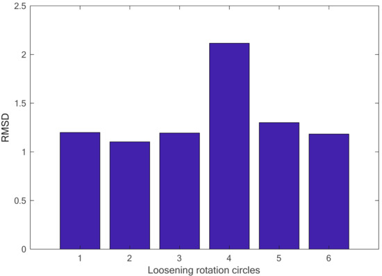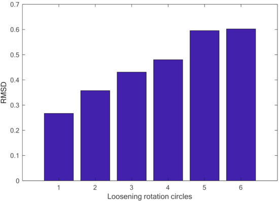 The calculated root-mean-square distance (RMSD)-based looseness index under different loosening severities.